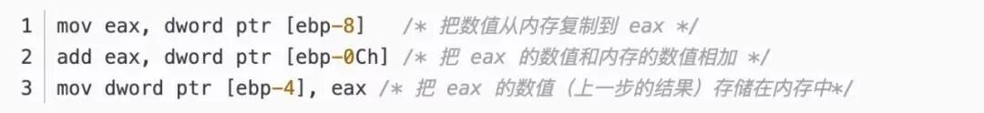 比如,mov,add分别是数据的存储(move)和相加(addition)的简写。